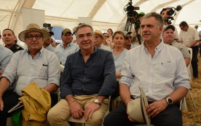 Guillermo Rodríguez y Yamandú Orsi, participaron de la inauguración de la cosecha de cebada en Ombúes