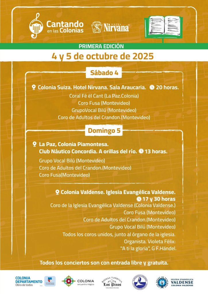 Este sábado 4 y domingo 5 de octubre la música Coral será protagonista en distintas localidades de la región este de Colonia.