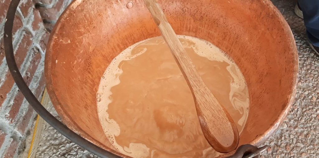 Carlos elaboró unos seis litros, que despertaron la curiosidad de todos los presentes. “El dulce casero es otra cosa”, comentó, mientras continuaba la tarea.