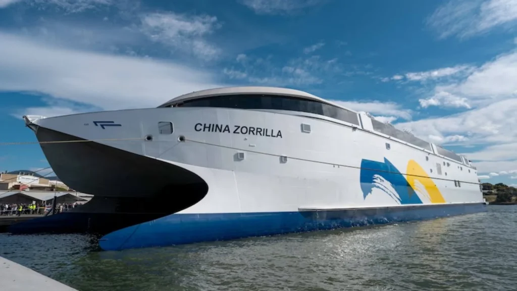El barco fue presentado a finales de 2023 y tendrá una capacidad para 2.100 pasajeros y 225 vehículos. La embarcación es 100% eléctrica.