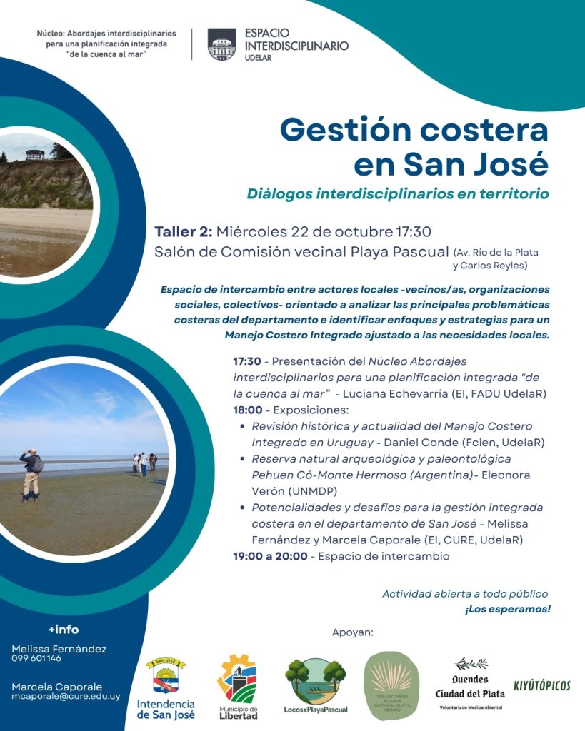 Hoy y mañana se desarrollarán en San José dos talleres sobre gestión costera, organizados por el Espacio Interdisciplinario de la Universidad de la República, con el apoyo de la Intendencia, el Municipio de Libertad y colectivos locales. Las actividades, abiertas a todo público, buscan generar espacios de intercambio entre técnicos, autoridades y vecinos sobre el manejo sustentable del litoral josefino.