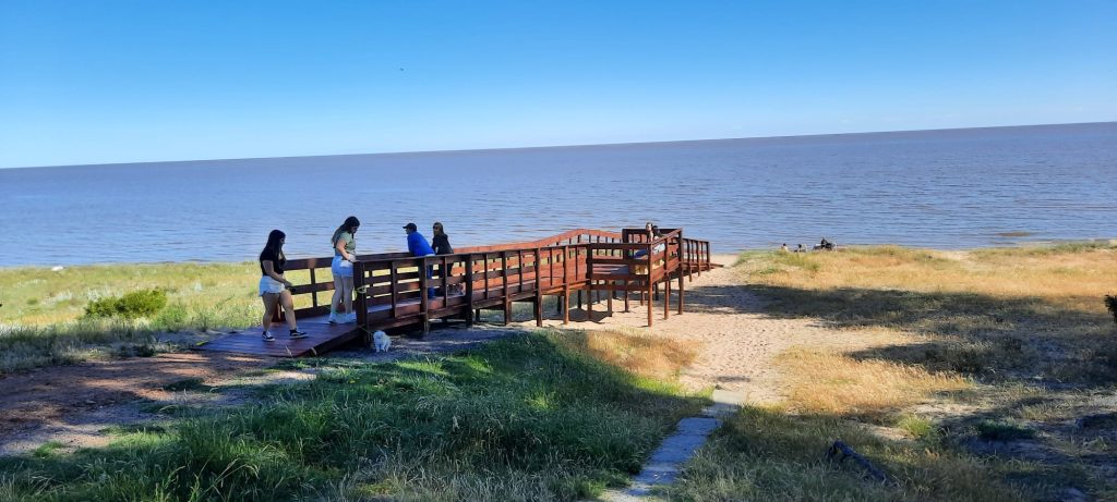 Miranda explicó que ya se concretaron tres bajadas —en Blancarena, en calle Toma del Colla, en Britópolis por calle Guanabara y en Playa Azul en calle Sinasina—, y que próximamente comenzará la instalación de las dos restantes.