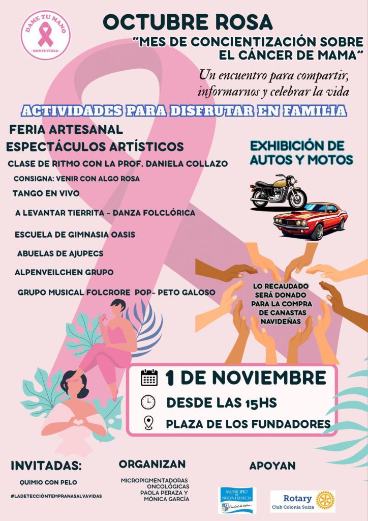 Este sábado a las 15 horas se llevará a cabo en la Plaza de los Fundadores de Nueva Helvecia una jornada de concientización sobre el cáncer de mama, bajo el lema “Un encuentro para compartir, informarnos y celebrar la vida”.