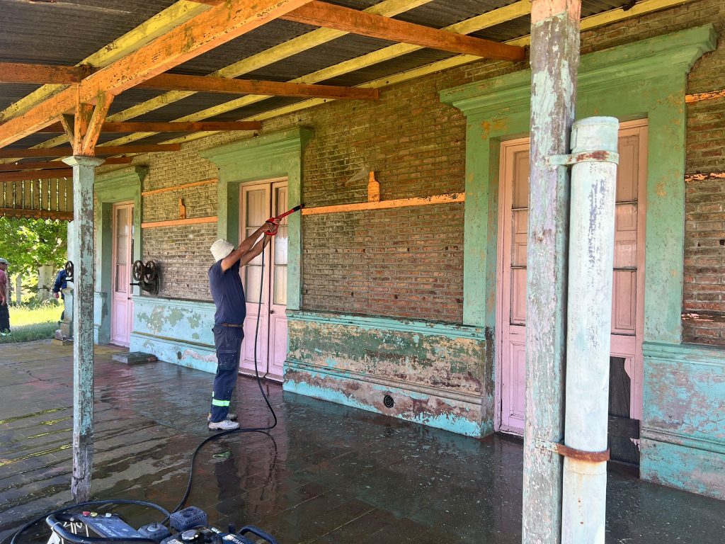 Los equipos municipales trabajan en el mantenimiento de parques y jardines, priorizando las áreas verdes de uso cotidiano. En el barrio Juan Jackson siguen las mejoras en la estación de AFE, sede del centro cultural, con labores de limpieza y pintura.