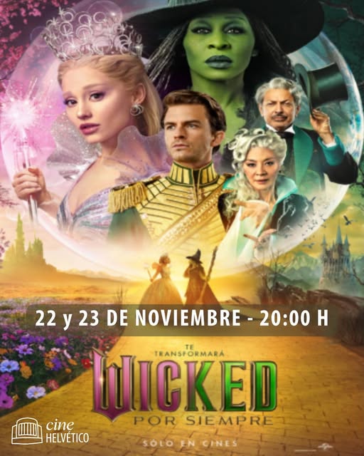 El sábado 22 de noviembre y domingo 23 de noviembre a las 20:00 horas se proyectará la película de fantasía y aventuras Wicked por siempre.