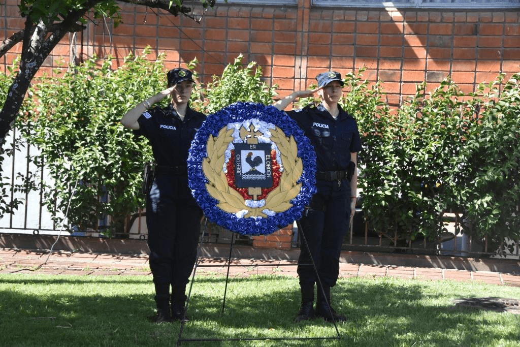 Se colocó una ofrenda floral en el martirologio ubicado en la propia Jefatura, un gesto simbólico de respeto y gratitud por el sacrificio realizado. La ceremonia tuvo un componente particularmente conmovedor con la asistencia de familiares de los funcionarios fallecidos, quienes compartieron este espacio de recuerdo y reconocimiento a sus seres queridos.
