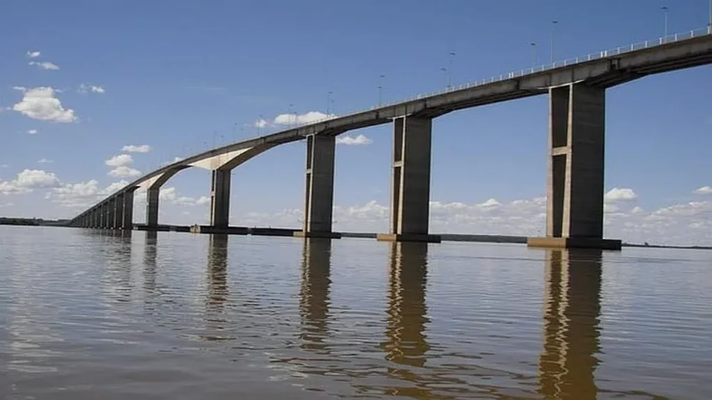La iniciativa retoma la idea impulsada a fines de los años noventa durante las gestiones de Carlos Menem y Julio María Sanguinetti, cuando se desarrollaron estudios preliminares para una traza de 38 kilómetros, con una altura pensada para permitir el paso de buques de gran porte y la posibilidad de incorporar una vía ferroviaria.