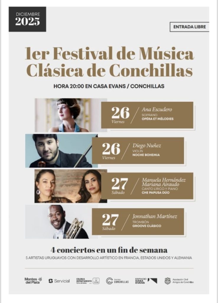 Conchillas se prepara para inaugurar una cita inédita en su calendario cultural: el 1.er Festival de Música Clásica, un encuentro que reunirá a cinco artistas uruguayos con desarrollo artístico en Francia, Estados Unidos y Alemania.