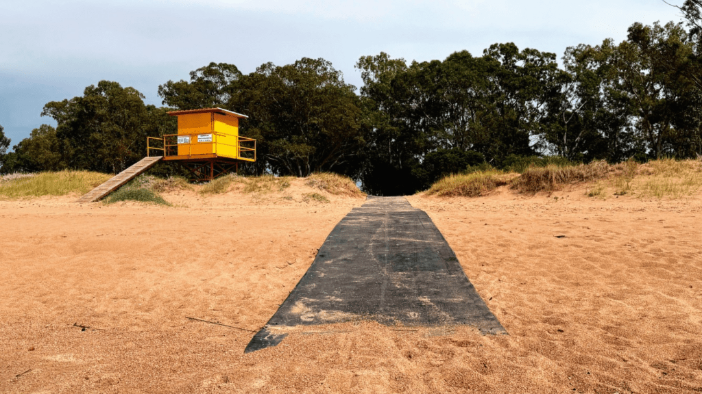El Municipio de Juan Lacaze informó que quedó instalada una alfombra especial de goma que permite un acceso más seguro y accesible a Playa Charrúa, en sustitución de la anterior rampa de madera ubicada en la bajada próxima a la UPA de OSE.