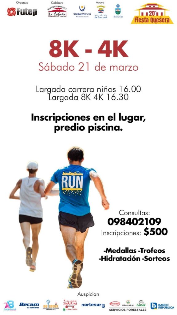 En el marco de la 20ª Fiesta Quesera, este sábado se realizará una competencia de running en Ecilda Paullier, con circuitos de 4 y 8 kilómetros.