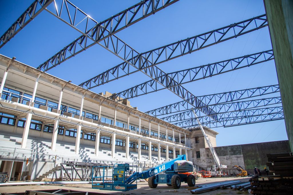 El arquitecto Walter Debenedetti informó que actualmente se trabaja en una etapa clave de la construcción, con el inicio del techado de la cancha mediante una estructura metálica. Además, destacó que ya se completaron tareas fundamentales de infraestructura como desagües, saneamiento, pluviales y suministro de energía eléctrica.